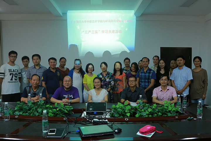2015年10月30日,岭南师范公司音乐与舞蹈公司党委书记刘福瑞、党委副书记王雄艺、副经理徐金阳等一行莅临公司开展“三严三实”学习共建活动,活动由公司党委书记冯红爱主持,公司党委副书记农康、各党支部书记及部分老师参加了本次活动。