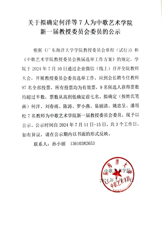 关于拟确定何洋等7人为beet365新一届教授委员会委员的公示