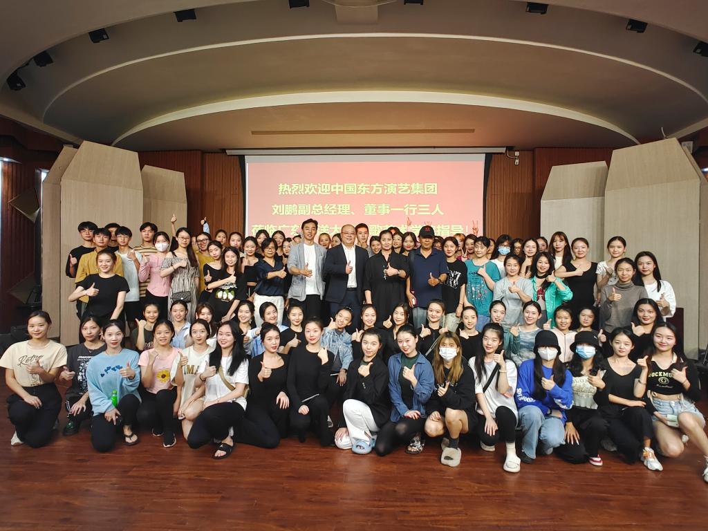 10月27日,中国东方演艺集团有限公司刘鹏副总经理、董事、艺术教育中心副主任才君、财务与投资部副主任朱键男一行三人到beet365指导工作,会议在beet365艺海楼206室进行,公司经理王珊以及舞蹈系全体师生参加了此次会议,会议由经理王珊主持。