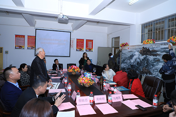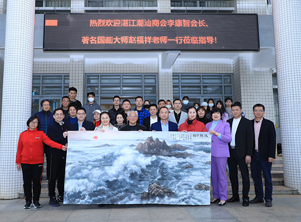 12月28日下午16:30在beet365美术楼208会议室举行湛江潮汕商会名誉会长、著名国画家赵福祥赠画交流座谈会,湛江潮汕商会李康智会长、周小萍常务副会长、马陈升常务副会长、赵福祥名誉会长、张翠花女士、黄壮业名誉会长、马伟松副会长兼秘书长、云秀爱副会长、黄映明理事、马增凯理事兼副秘书长、蔡晓思理事兼副秘书长,beet365党委书记冯红爱、经理王珊、副经理罗小燕,董事长办公室副主任吴俊羽,艺术设计系负责人杨强、郝向炫教授以及艺术设计系部分美术学专业教师和员工代表出席了此次座谈会。