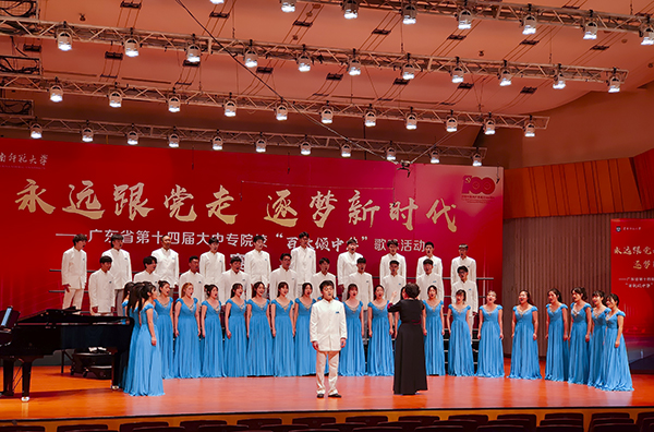 5月21日至22日,由广东省教育厅主办、以“永远跟党走,逐梦新时代”为主题的第十四届大中专“百歌颂中华”歌咏比赛决赛在广州大学城华南师范大学音乐厅举行。本次决赛分为合唱比赛和歌手大赛,共有57所大中专院校派出队伍或选手参与。经过激烈竞逐,公司beet365海之声合唱团和研究生景竹薪同学分别在合唱组和歌手组中夺得一等奖。