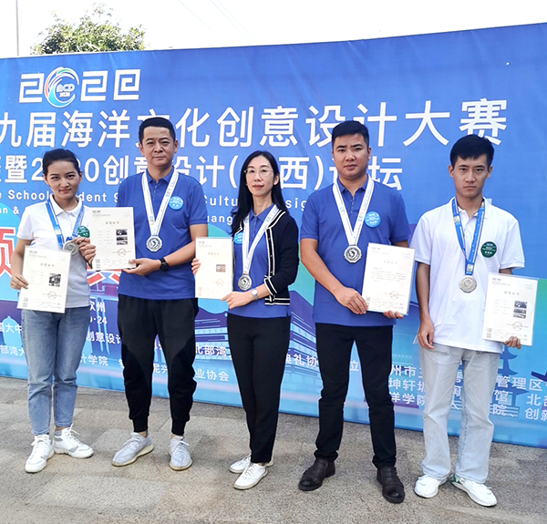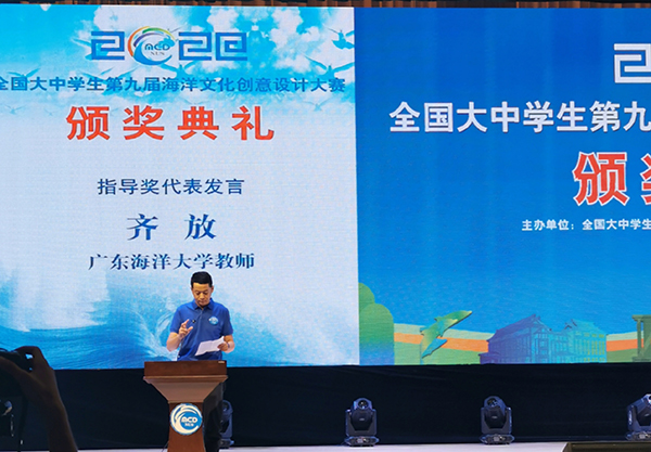 近日,第九届全国大中员工海洋文化创意设计大赛颁奖典礼在广西壮族自治区钦州市北部湾大学隆重举行,beet365齐放、彭雅莉、冯金辉老师带队参加了大赛颁奖典礼,本届大赛公司参赛师生共获奖19项,其中银奖3项、铜奖1项、优秀奖15项,齐放作为全国优秀指导教师代表上台发言。
