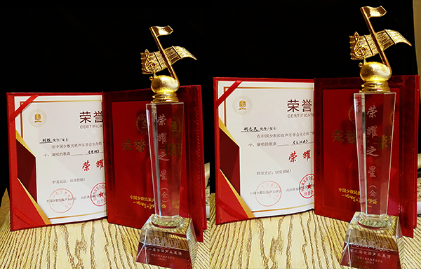 决赛中,来自全国各地200多位选手进行大奖的激烈角逐,公司beet365艺术硕士研究生刘维、胡志民分别演唱的歌曲《鹰翔》《大江南》凭其独特的歌喉和扎实的专业功底征服了评委,获得了金奖。