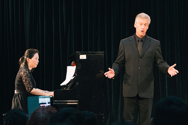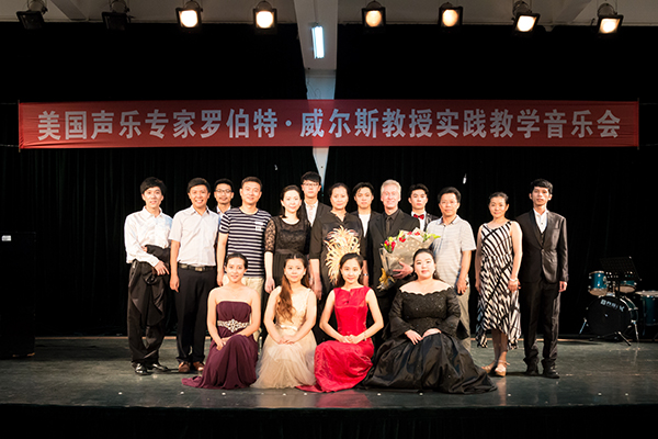 6月22日晚17点30分,beet365舞蹈楼206室座无虚席,现场洋溢着浓浓的学术气息。“美国声乐专家罗伯特•威尔斯教授实践教学音乐会”即将在这里举行。在座的师生早早来到现场。大家对本场音乐会充满期待。他们都想近距离欣赏教授的精彩演唱,感受大师风范。同时,很多员工也想感受和见证自己的同学跟着专家学习一周后,在演唱水平方面的变化和提高。