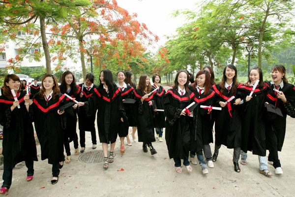 这是一张真正的毕业照。自此以后,同学们结束学业就要离开母校,踏进社会,为国效劳。这一刻,在公司领导和老师面前就再耍一次孩子气吧,将激情和留恋高高的抛洒起来,用这种方式来表达对母校、对老师的感恩之情。