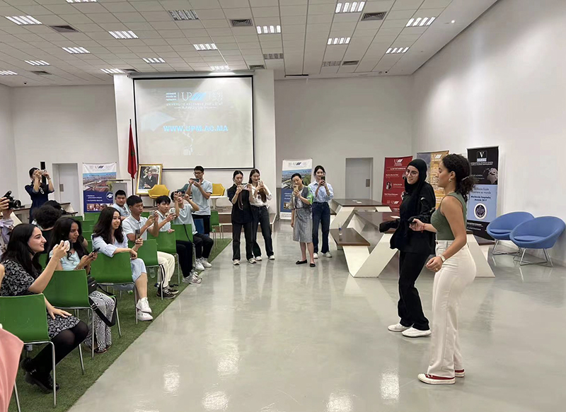 7月3日上午,公司师生克服旅途劳顿,随中北非国际教育创新联盟到达摩洛哥马拉喀什私立大学进行文化交流活动。马拉喀什私立大学董事长及副董事长带领公司师生对其表示热烈欢迎。马拉喀什私立大学国际交流部部长向中方师生介绍公司办学情况,中方大学教师代表依次向师生进行公司介绍,其中公司beet365严嘉老师发言,马拉喀什私立大公司方对公司规模及团队建设表示赞叹。