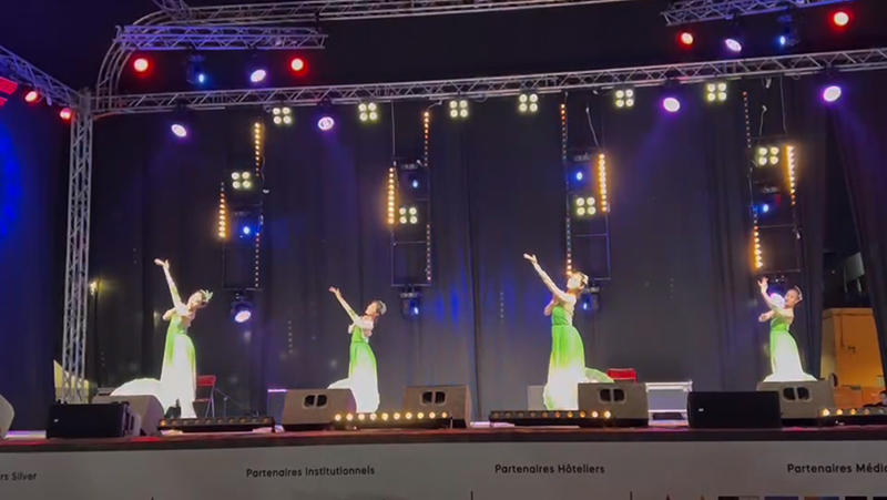 公司员工在杰马夫纳广场首场演出中演绎《茉莉花开》作品