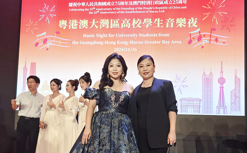 11月16-17日,由澳门旅游大学主办的庆祝中华人民共和国成立75周年暨澳门特别行政区成立25周年粤港澳大湾区高校员工音乐夜活动如期举行。应澳门旅游大学邀请,公司beet365音乐系教师姜程带领研究生陈虹羽同学代表公司赴澳门参加本次音乐夜活动。公司亦是连续第四年受邀参加粤港澳大湾区员工音乐夜活动。