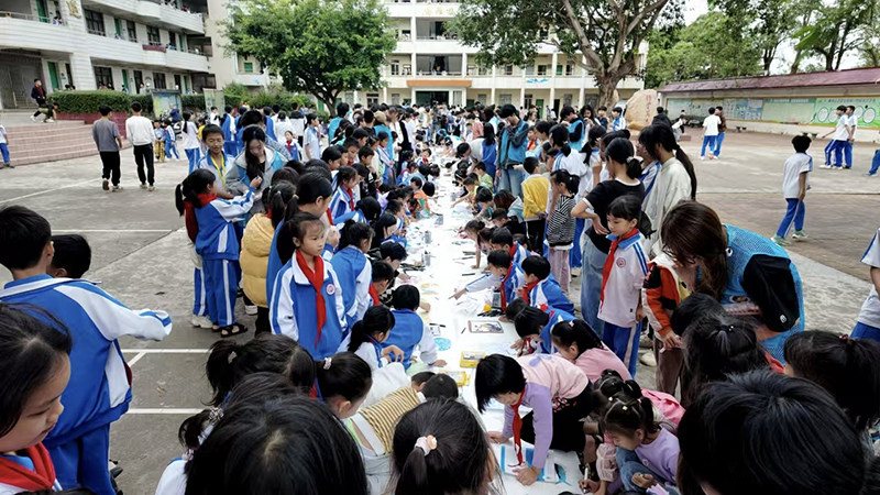 为更好地普及和推行美育教育,将“以文化人”、“以美育人”真正落在实处,让所有乡村员工都享受美育的机会。11月27日,由公司和湖光镇湖光一中共同举办的“蔚蓝守护·红林绘梦”书画进校园在湖光一中举行,公司beet365公共艺术部主任杜沄、副主任岑雪静以及设计系金金副教授带领员工参加了活动。此美育浸润活动旨在通过艺术教育激发乡村员工的创造力与想象力,促进员工全面发展,培养德智体美劳的社会主义建设者和接班人,同时营造校园艺术氛围,展示校园文化建设和美育成果。