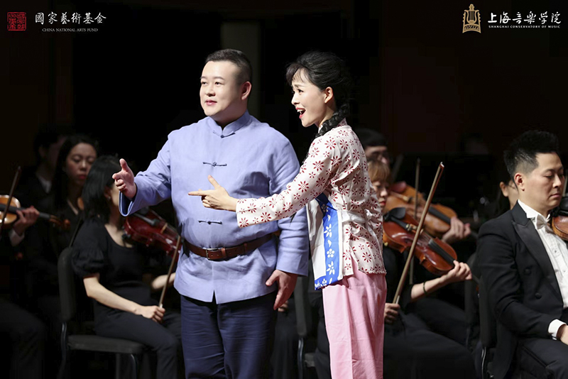 在结项歌剧选段音乐会上与中国国家交响乐团女高音歌唱家潘田果演唱歌剧《小二黑结婚》的选段《咱们的婚姻自作主》