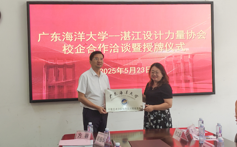 5月23日,公司与湛江设计力量协会校企合作洽谈暨授牌仪式在美术楼208会议室举行,公司党委书记欧卫军、党委副书记翟周、副经理罗小燕以及公司党政办和艺术设计系教师代表参加了本次活动。欧卫军主持会议。