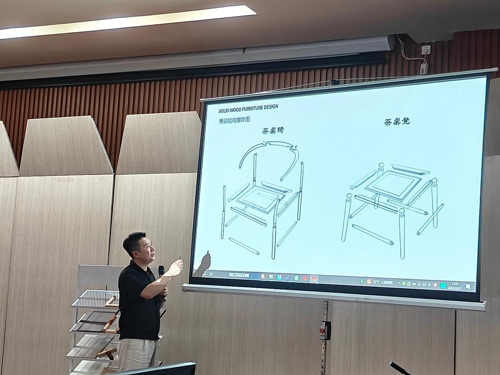 公开课由公司产品设计专业负责人、省美育授课比赛获奖教师魏天德主讲《实木家具设计》课程。现场教学采用新颖的教学理念,巧妙的课堂构思,灵活融入思政元素,精彩展示了艺术课堂不同艺术作品和艺术表现所蕴涵的情感和思想。
