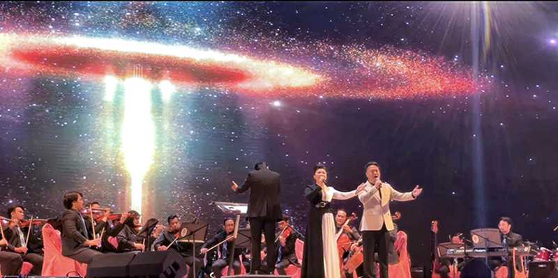 当晚,来自公司的原创歌曲《丝路万里情》成为全场焦点。这首由著名作曲家张晋红副教授潜心创作的作品,在姜程、张春雨两位老师的深情演绎下,以悠扬旋律勾勒丝路画卷,用动人歌声传递文化共情。该作品全程在公司李梓郡经理的艺术指导与何洋副经理的艺术编导下打磨成型,从创作构思到舞台呈现,尽显公司创作实力与艺术匠心。