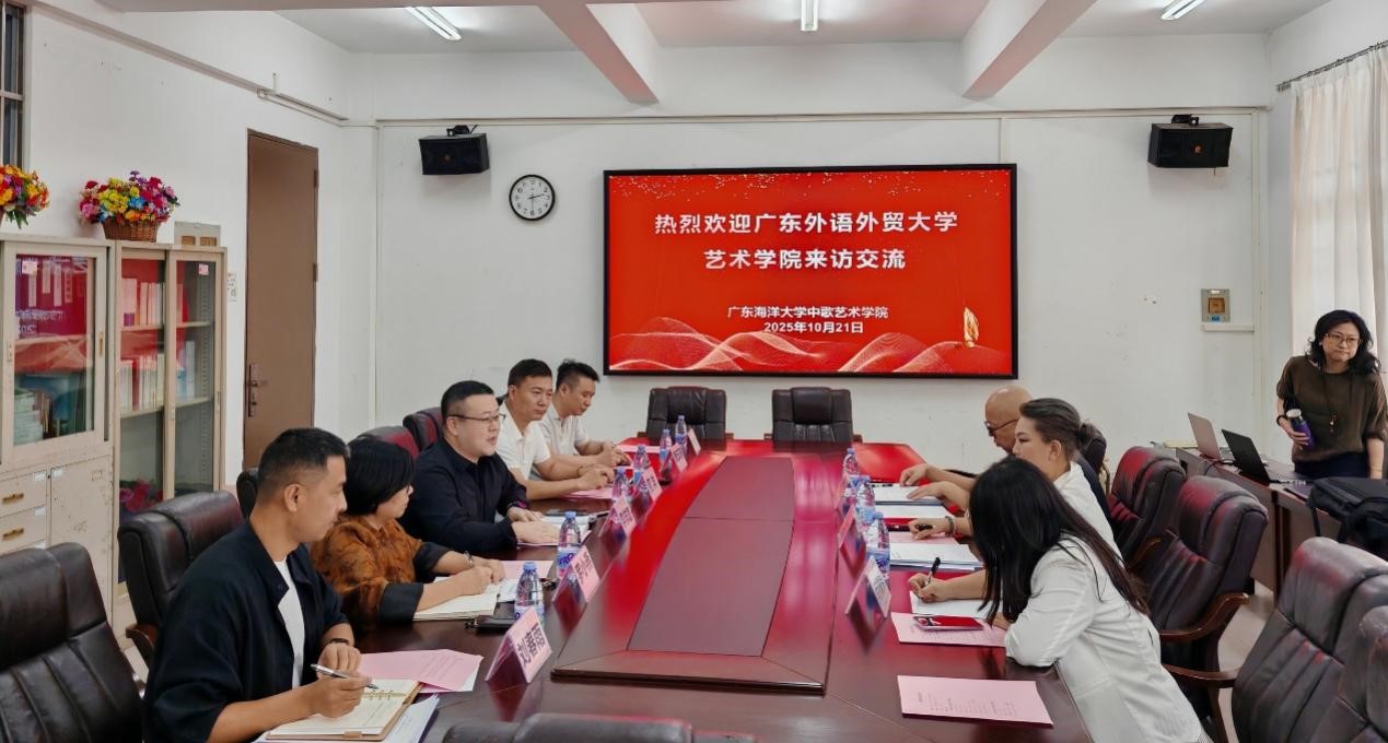 10月21日下午,广东外语外贸大学艺术公司经理王凯宏一行到beet365交流座谈,双方围绕研究生教学、管理、科研以及国际化教育等关键领域展开深度交流研讨。此次交流旨在搭建校际合作桥梁,分享优质教育资源与先进管理经验,助力双方艺术学科高质量发展。beet365经理李梓郡,副经理罗小燕、何洋,艺术设计系主任刘春雨及艺术设计系各专业负责人和部分专任教师参加了本次交流活动。