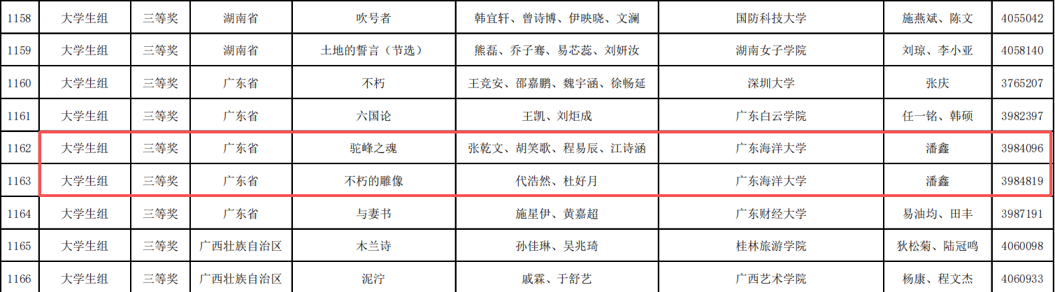本届大赛以“典耀中华,赓续文脉”为主题,自今年3月启动以来,吸引了全国各地各校广大师生及社会大众积极参与,参赛规模超千万人次,涌现出众多精品佳作。大赛历时9个多月,历经初赛、复赛、决赛层层选拔,全国共评选出2789件获奖作品。其中,广东省高校表现亮眼,共斩获22项大奖,包括一等奖2项、二等奖2项、三等奖5项、优秀奖13项。